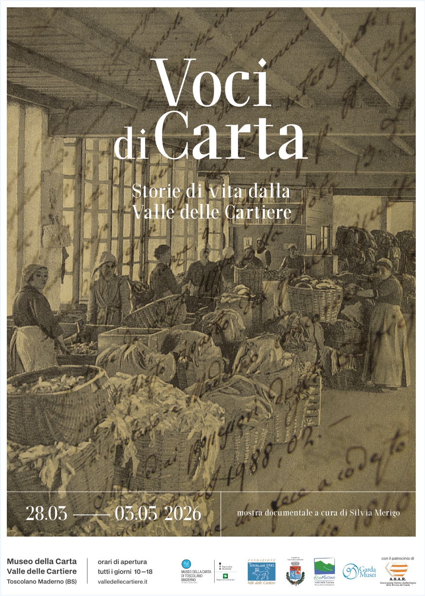 28/03/2026 Voci di Carta. Storie di vita dalla Valle delle Cartiere Voices on Paper. Stories of life from the Paper Mill Valley, exhibition curated by Silvia Merigo.